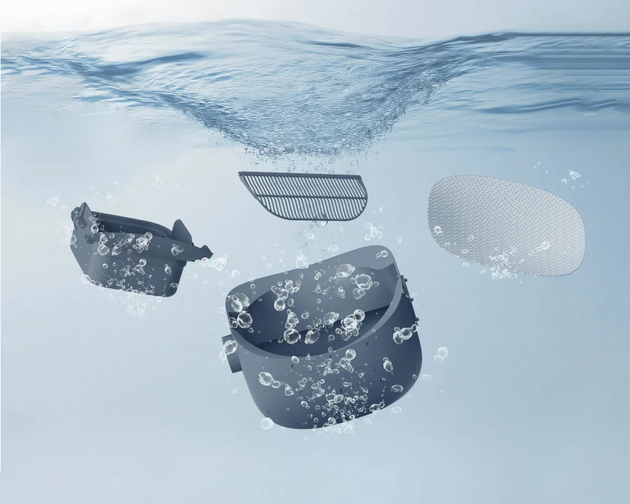 - An upgraded waste bin paired with an odor-locking system keeps your home smelling fresh, even while you’re away. Cleaning is effortless: press a button to empty, give it a quick wipe or rinse, and you’re done.